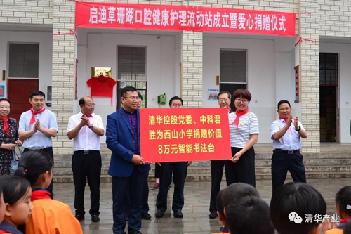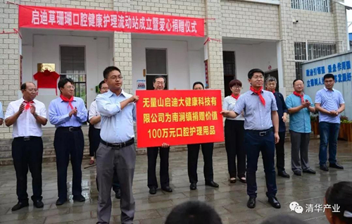 “土林凤凰”新产品发布 当日,启迪草珊瑚口腔健康护理流动站成立暨爱心捐赠仪式举行,姜胜耀、吉向阳共同为启迪草珊瑚口腔健康护理流动站揭牌。无量山启迪大健康科技有限公司向南涧镇5562名师生捐赠了3年免费口腔护理套装,总价值超过100万元。清华控股党委、中科君胜(深圳)智能数据科技发展有限公司为西山小学捐赠价值8万元的智能书法台;清华控股党委还捐赠5台电脑等办公用品,用于支持西山村党员阵地建设,并参与西山基础设施建设,出资勘钻水井,解决西山村部分群众用水难问题。云南启迪特别邀请云南圣约翰医院专家现场为师生进行了口腔护理知识讲座。