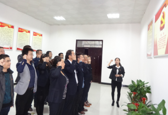 会上,一是通报了公司党总支组织建设工作和党费收缴规定,同时对预备党员转正进行表决。党总支副书记王静通报了公司党总支构成:肖红星为书记,王静为副书记,张晓辉为宣传委员、张晓梅为文体委员、张建华为组织委员、王瑛为纪检委员。党总支下设:生产、销售、行政、辰济大药四个支部。李继虎任生产支部书记,刘明任辰济大药房支部书记,张晓辉任销售支部书记,张建华任行政(含退休)支部书记。参会党员对预备党员转正,《中共紫光辰济药业公司党总支关于党费收缴、使用和管理的规定》两项内容进行了讨论,全票通过了张建华、寇涛、张芳娥、贾荣、马锁勋五名预备党员转为中共正式党员和《中共紫光辰济药业公司党总支关于党费收缴、使用和管理的规定》。 二是开展党员活动。在党员活动中心,全体党员分排站立,新党员面对党旗,由副书记王静领誓,新老党员集体宣誓。张建华、寇涛、张芳娥、贾荣、马锁勋五名新党员逐一表态发言。工会主席李继虎寄语新党员,总支书记肖红星对五名新党员加入中国共产党表示祝贺。肖书记、李主席、王副书记分别给新党员佩戴了党徽,并合影。