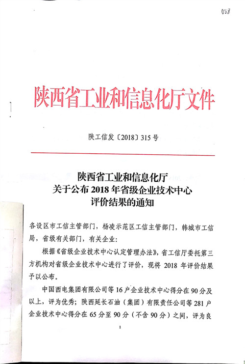 根据陕工信发[2018]315号文件《陕西省工业和信息化厅关于公布2018年省级企业技术中心评价结果的通知》,我司在此次评价中取得83.64分的喜人成绩。