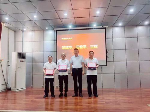 由党支部王静书记宣读表彰决定。张建华、汪君平、甘辉被评为公司“优秀共产党员”,党支部肖红星书记为获奖者颁发荣誉证书和礼品合影留念;肖红星、王静、李继虎、张晓辉、赵琳、寇涛、白琳、苏媛媛、张亚利、高晓明、田乃林、贾荣、田盟盟、张建华、甘辉15人获得“爱心大使”称号,并由党支部王静书记、副总经理李继虎为获奖者颁发荣誉证书和礼品合影留念。