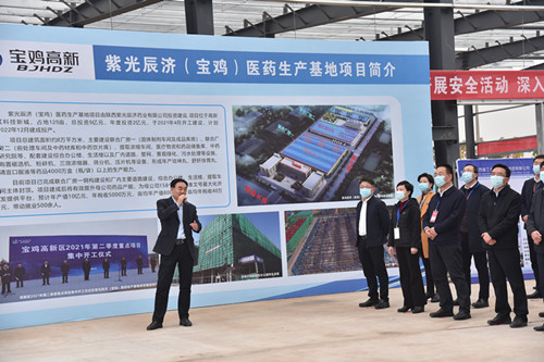 10月25日下午,宝鸡市委十二届十一次全会观摩团在宝鸡市委常委、政法委书记景耀平,市委常委、常务副市长刘荣贤,市委常委、副市长王宁岗带领三百多位与会领导顶着寒意和蒙蒙细雨到紫光辰济(宝鸡)医药生产基地项目建设现场观摩指导工作。公司总经理王睿成向前来观摩的领导们表示热烈欢迎和衷心感谢,感谢市委市政府对项目建设的关心和扶持。 “紫光辰济(宝鸡)医药生产基地”项目位于宝鸡高新区科技新城工业园区,是由拼搏网页版登录入口投资建设的一座现代化医药联合体,项目总投资5亿元,占地125亩,项目总建筑面积约8万平方米,于2021年4月开工建设,主要建设综合楼、生活楼、联合厂房一、联合厂房二、提取车间、医疗物资应急储备库、中药研究院等,项目建成后预计年产值10亿元、年税收5000万元,带动就业500余人。 在观摩讲解中,公司总经理王睿成重点介绍了紫光辰济药业的发展历史沿革,据宝鸡工业志记载公司历史可追溯至1918年的达兴堂药店,走过了百年沧桑岁月,经过几代人的坚守和传承,以“悬壶济世、达兴民生”的初心和“药材必道地、配方必独特、提戥必齐目,炮制必如法、品质必上乘、待人必如亲”的“六必令”传训做为制药精神,辰济人已将其提炼升华为“放心药、辰济造”和“做好药,为人民”的核心价值理念,以优质的产品和真诚的服务取得了良好的经济效益和老百姓的口碑。 观摩活动中,领导们对公司展示的产品产生了极大的兴趣,尤其是独家品种“舒肝快胃丸”和“消积丸”,这两款产品是公司主打黄金单品,“舒肝快胃丸”主要功能是肝胃同治,解酒保肝功效显著;“消积丸”主治各种积症,对改善口气、便秘、减轻肚子负担和消除大肚腩作用明显。这两种都是公司独家产品,市场需求和市场前景巨大。观摩领导们对新厂建设和企业发展交口称赞,希望公司加快建设步伐,以新的发展态势早日造福三秦父老和广大消费者。